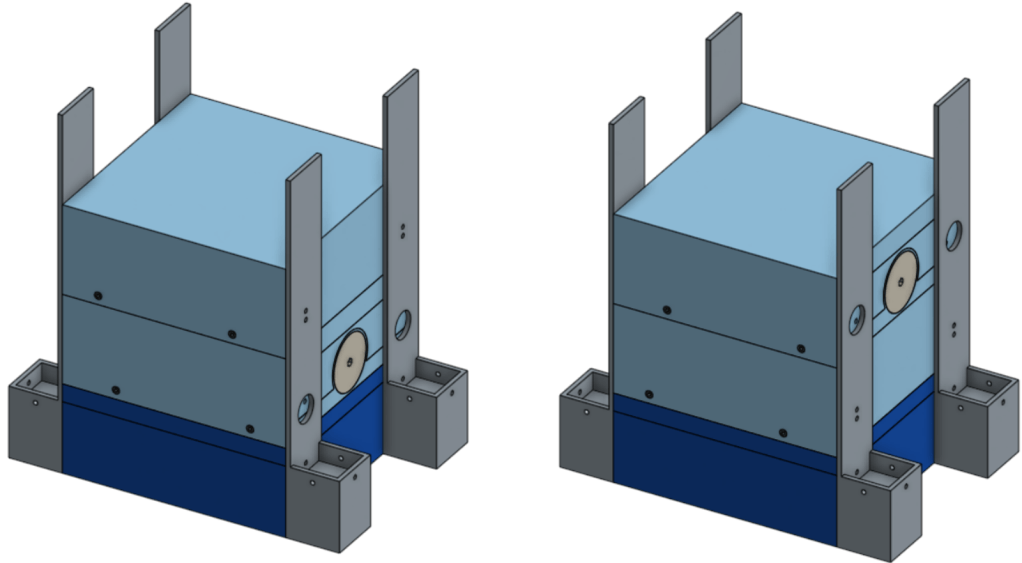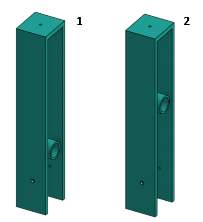 Supports were used to assembly the electronic housing, dispersal devices, and the zapping element of the bug zapper. Two different supports were used due to the separate facing directions of the two dispersal assemblies (Fig. 27) used in the bug zapper design. The goal of having the CO2 released in two directions was to increase the spread of CO2 to the surrounding area and thus attract more mosquitoes. The supports attach to the dispersal device cover at the opposite side from where the gas is released.