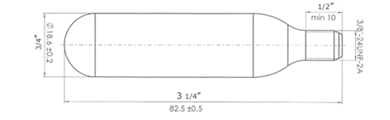 The first challenge for the design process was to create a way to store and release CO2 as an attractant mimicking the exhalation of CO2 in human breath. A C02 cartridge commonly used for air powered rifles was selected given its established availability. Specifically, the Crosman 12g CO2 cartridge [7], with its dimensions shown below in Figure 1, was to be used as the gas storage device.
