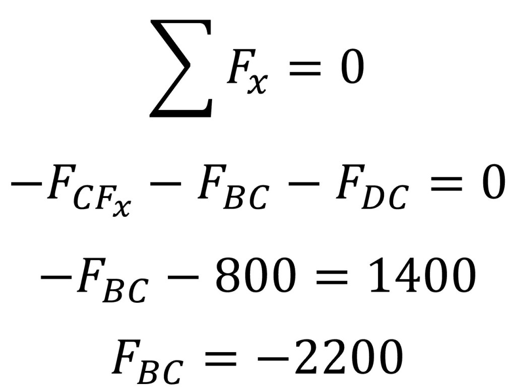 To solve for the force experienced in truss BC all the x-direction forces must be set to zero. This yields the following.